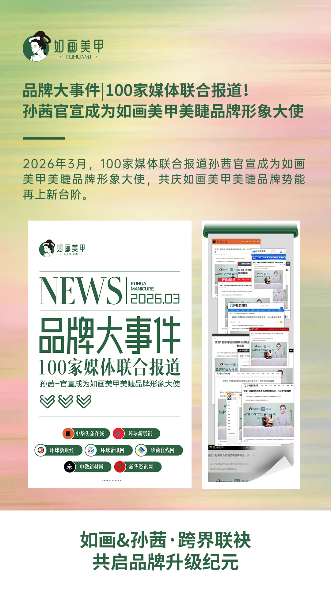 品牌大事件 | 100家媒体联合报道!孙茜官宣成为如画美甲美睫品牌形象大使
